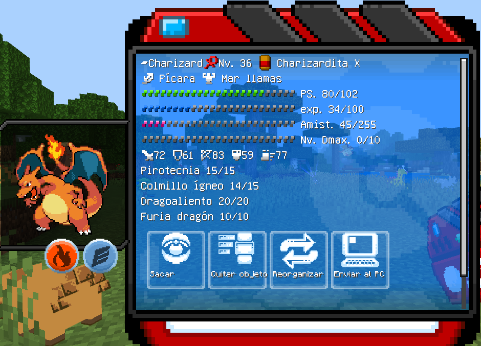 - El addon mantiene los elementos tradicionales de Minecraft, permitiendo que sobrevivas, explores, craftees o luches normalmente mientras interactúas con criaturas Pokémon-like.